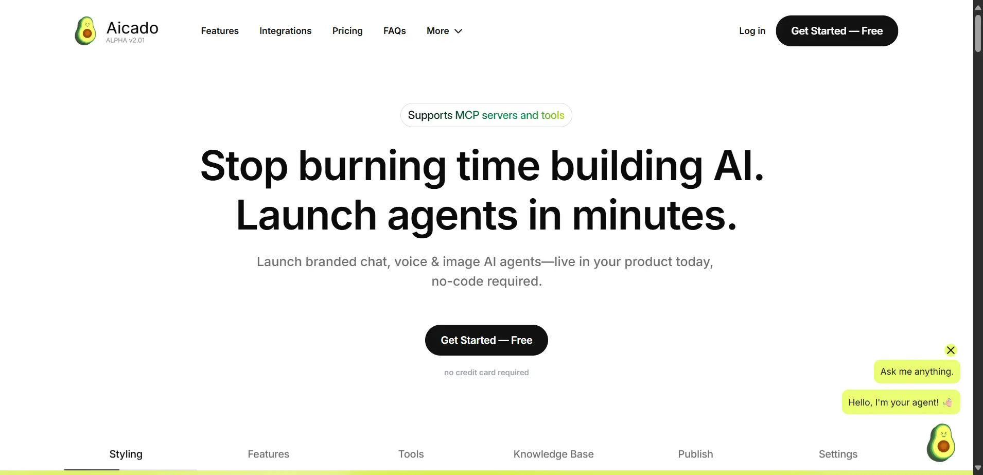 Stop wasting time coding AI agents from scratch. Aicado lets you launch chat, voice, and visual AI agents in minutes. No-code setup means anyone can deploy powerful AI inside their product today.