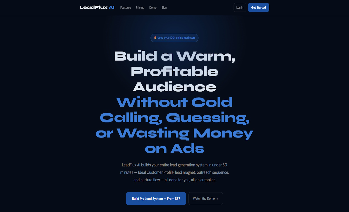 LeadFlux AI is a done-for-you lead generation platform that replaces standalone tools and freelancers. Input your niche and offer — get a complete system: Ideal Customer Profile, lead magnet, opt-in page copy, outreach sequence, and nurture flow. Each step feeds the next for higher conversions. Built for coaches, marketers, freelancers, and agencies. One-time payment. No monthly fees.