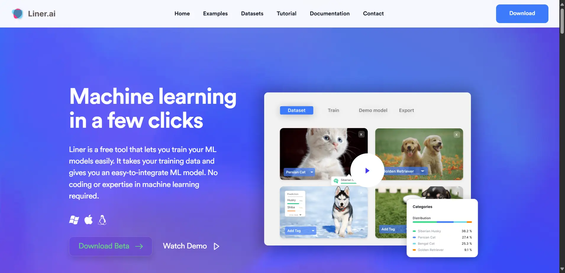 Liner brings machine learning to everyone. It runs entirely on your computer, ensuring privacy while delivering powerful, production-ready AI models within minutes — no cloud, no code, no limits.