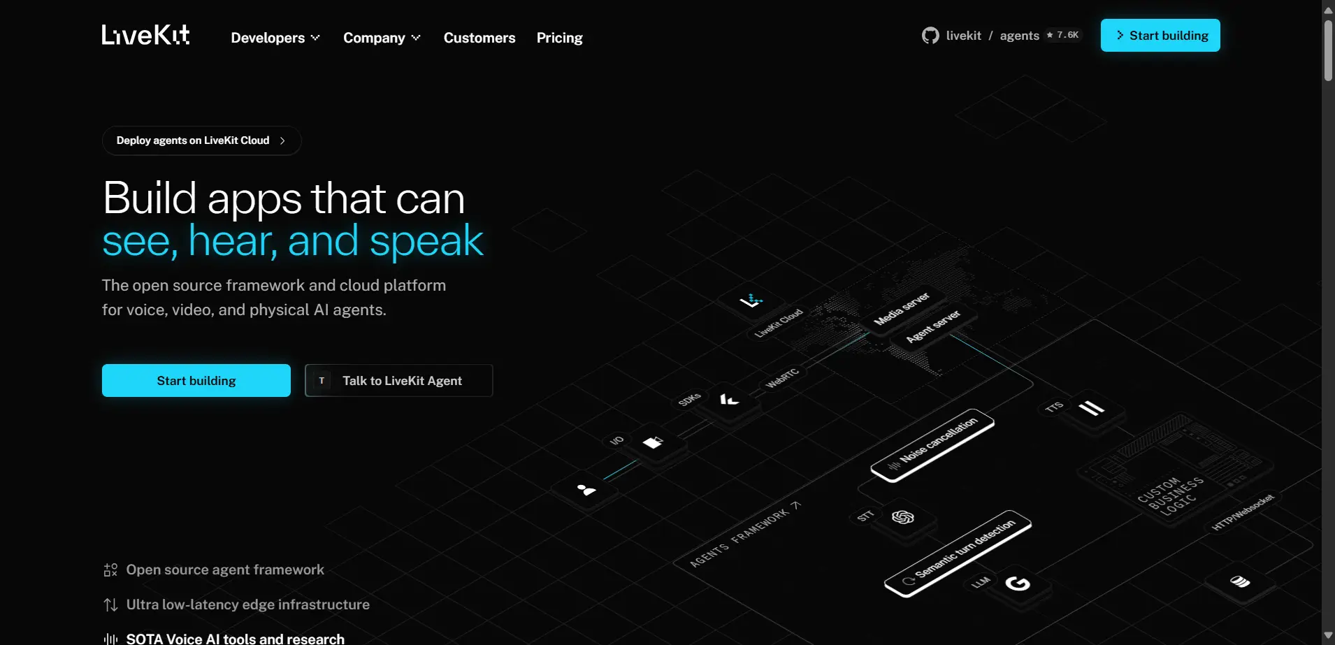 LiveKit is a powerful open-source platform designed to help you build real-time voice, video, and AI-driven applications quickly. Whether youβre creating a SaaS product, deploying teleoperation systems, or building voice-enabled agents, LiveKit provides everything you need β from scalable infrastructure to simple APIs.