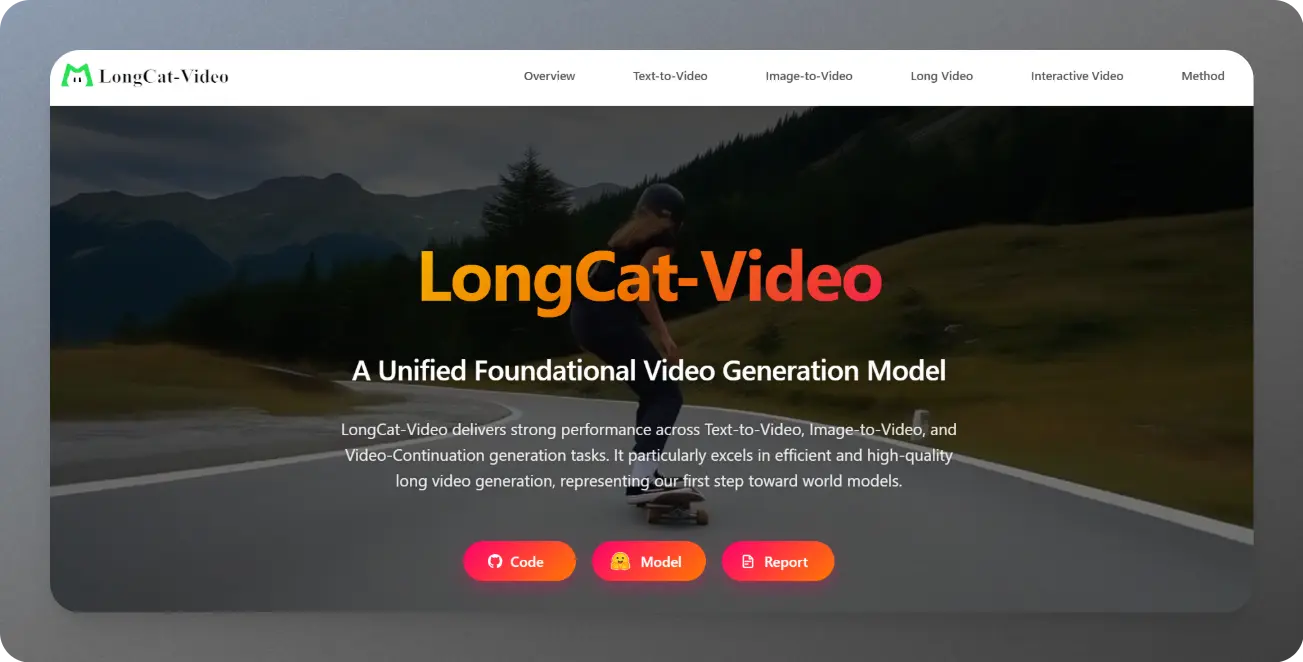 LongCat-Video is a unified AI model that creates high-quality videos from text and images while supporting video continuation. It is designed to generate longer clips with consistent visuals and minimal quality loss.