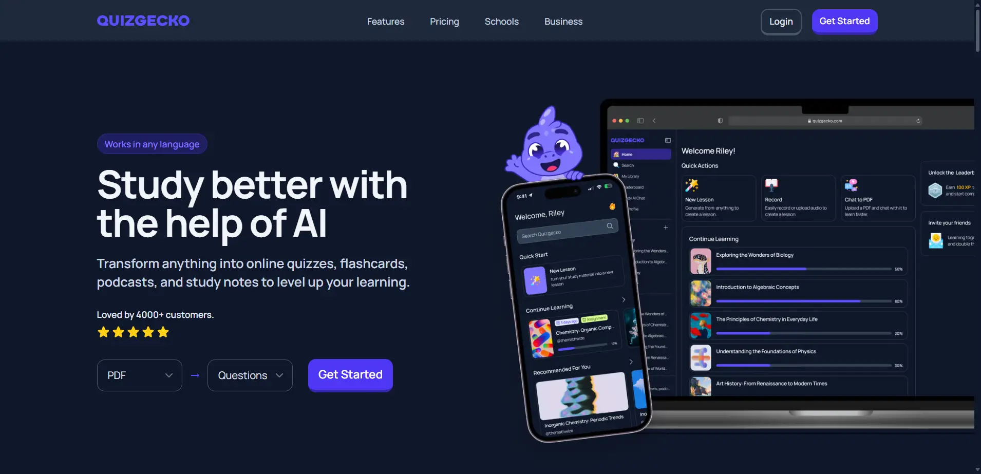 Quizgecko is an AI-powered study tool that transforms any text, file, or webpage into interactive quizzes, flashcards, podcasts, and study notes. Designed for students, educators, and businesses, it helps you learn faster with scientifically proven spaced repetition and AI-powered feedback.