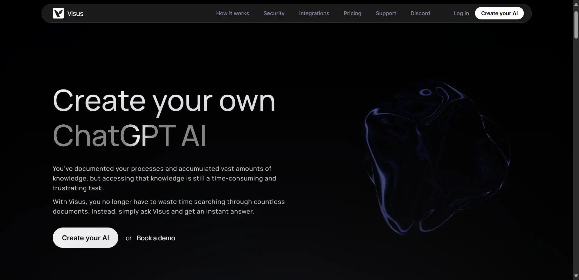 Visus lets you build your own ChatGPT-style AI trained entirely on your documents. Instead of wasting hours searching files, simply ask Visus—and get instant, verified answers in natural language. Whether for individuals or business teams, it makes your knowledge accessible and actionable in seconds.